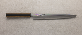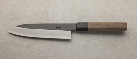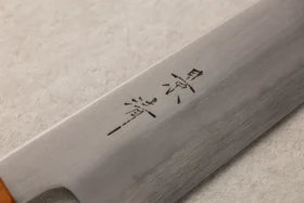 Shirogami, znano tudi kot White Steel, je vrhunsko ogljikovo jeklo, ki velja za eno najboljših izbir za tradicionalne japonske nože. Ime Shirogami v japonščini pomeni »beli papir« in izhaja iz preproste, bele embalaže, v katero proizvajalec Hitachi Metals zavija to jeklo. Osnova Shirogami jekla je izredno čisto ogljikovo jeklo brez dodatnih zlitin, kar omogoča izjemno ostrino in lahkotno brušenje. Zaradi svoje čistosti in visoke vsebnosti ogljika rezila iz Shirogami jekla razvijejo izjemno oster rob, vendar jeklo zahteva redno in skrbno vzdrževanje, saj je zaradi svoje narave bolj občutljivo na rjavenje in obrabo. Shirogami #2 je prav tako tradicionalno japonsko ogljikovo jeklo, ki vsebuje nekoliko manj ogljika kot Shirogami #1. Zaradi tega dosega trdoto okoli 63-64 HRC, kar mu daje večjo žilavost in manjšo dovzetnost za krušenje. Čeprav ne doseže enake obstojnosti ostrine kot Shirogami #1, ostaja zelo ostro in se enostavneje brusi, zato je primerno tudi za tiste, ki šele vstopajo v svet ogljikovih jekel. Shirogami #2 predstavlja odlično ravnovesje med ostrino, enostavnostjo brušenja in vzdržljivostjo, zato je priljubljena izbira tako med domačimi kot profesionalnimi kuharji.
