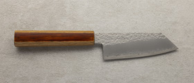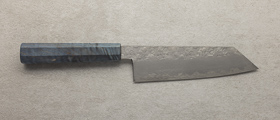 Kovačija HADO je mlada, a izjemno cenjena japonska delavnica, ki združuje starodavno tradicijo kovaštva z moderno estetiko in izjemno natančnostjo izdelave. Ustanovljena je bila leta 2019 v Sakaiu, enem najstarejših in najbolj priznanih japonskih središč za izdelavo nožev. Za blagovno znamko stojijo trije mojstri: Maruyama-san, strokovnjak za končno brušenje, Ichikawa-san in Fukui-san, ki skupaj tvorijo srce in dušo HADO. Njihov cilj ni le izdelava funkcionalnih kuhinjskih orodij, ampak ustvarjanje rezil, ki so tako tehnično dovršena kot tudi estetsko izpopolnjena.