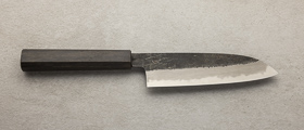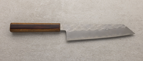Shirogami, znano tudi kot White Steel, je vrhunsko ogljikovo jeklo, ki velja za eno najboljših izbir za tradicionalne japonske nože. Ime Shirogami v japonščini pomeni »beli papir« in izhaja iz preproste, bele embalaže, v katero proizvajalec Hitachi Metals zavija to jeklo. Osnova Shirogami jekla je izredno čisto ogljikovo jeklo brez dodatnih zlitin, kar omogoča izjemno ostrino in lahkotno brušenje. Zaradi svoje čistosti in visoke vsebnosti ogljika rezila iz Shirogami jekla razvijejo izjemno oster rob, vendar jeklo zahteva redno in skrbno vzdrževanje, saj je zaradi svoje narave bolj občutljivo na rjavenje in obrabo. Shirogami #1 je tradicionalno japonsko ogljikovo jeklo, ki slovi po svoji izjemni čistosti. Zaradi visoke vsebnosti ogljika lahko dosega trdoto do 64 HRC, kar omogoča oblikovanje izjemno ostrega roba in daljše ohranjanje ostrine. Zaradi večje trdote je nekoliko bolj krhek in občutljivejši na krušenje, zato zahteva previdno uporabo in redno vzdrževanje. Zaradi svoje ostrine in čistosti jekla je Shirogami #1 priljubljena izbira med izkušenimi kuharji, ki iščejo nož z izjemno ostrino in tradicionalnim občutkom pri rezanju.