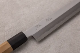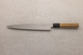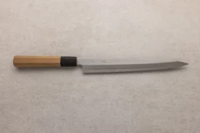 Yanagiba (柳刃) pomeni “vrbino rezilo” – kar opisuje dolgo, ozko in elegantno obliko noža, ki spominja na vejico vrbe. Zelo dolgo, ozko in tanko rezilo običajno meri med 24 in 33 cm, kar omogoča dolge in enakomerne reze. Rahlo ukrivljeno rezilo omogoča gladko rezanje po dolgem rezu brez pretiranega pritiska. Enostransko brušeno rezilo omogoča izjemno ostrost in natančnost, a zahteva malo več spretnosti pri uporabi. Ostra, zašiljena konica je primerna za natančne in detajlne reze. Tanek profil rezila omogoča minimalno trenje in ohranja teksturo ter videz nežnih sestavin, kot je surova riba. Yanagiba je najbolj primeren za rezanje sashimija in sušija, kjer so potrebni dolgi, čisti rezi, ki ne poškodujejo celovitosti ribjega fileja.