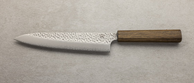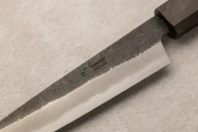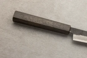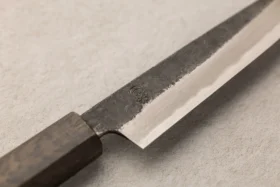 Shirogami, znano tudi kot White Steel, je vrhunsko ogljikovo jeklo, ki velja za eno najboljših izbir za tradicionalne japonske nože. Ime Shirogami v japonščini pomeni »beli papir« in izhaja iz preproste, bele embalaže, v katero proizvajalec Hitachi Metals zavija to jeklo. Osnova Shirogami jekla je izredno čisto ogljikovo jeklo brez dodatnih zlitin, kar omogoča izjemno ostrino in lahkotno brušenje. Zaradi svoje čistosti in visoke vsebnosti ogljika rezila iz Shirogami jekla razvijejo izjemno oster rob, vendar jeklo zahteva redno in skrbno vzdrževanje, saj je zaradi svoje narave bolj občutljivo na rjavenje in obrabo. Shirogami #1 je tradicionalno japonsko ogljikovo jeklo, ki slovi po svoji izjemni čistosti. Zaradi visoke vsebnosti ogljika lahko dosega trdoto do 64 HRC, kar omogoča oblikovanje izjemno ostrega roba in daljše ohranjanje ostrine. Zaradi večje trdote je nekoliko bolj krhek in občutljivejši na krušenje, zato zahteva previdno uporabo in redno vzdrževanje. Zaradi svoje ostrine in čistosti jekla je Shirogami #1 priljubljena izbira med izkušenimi kuharji, ki iščejo nož z izjemno ostrino in tradicionalnim občutkom pri rezanju.