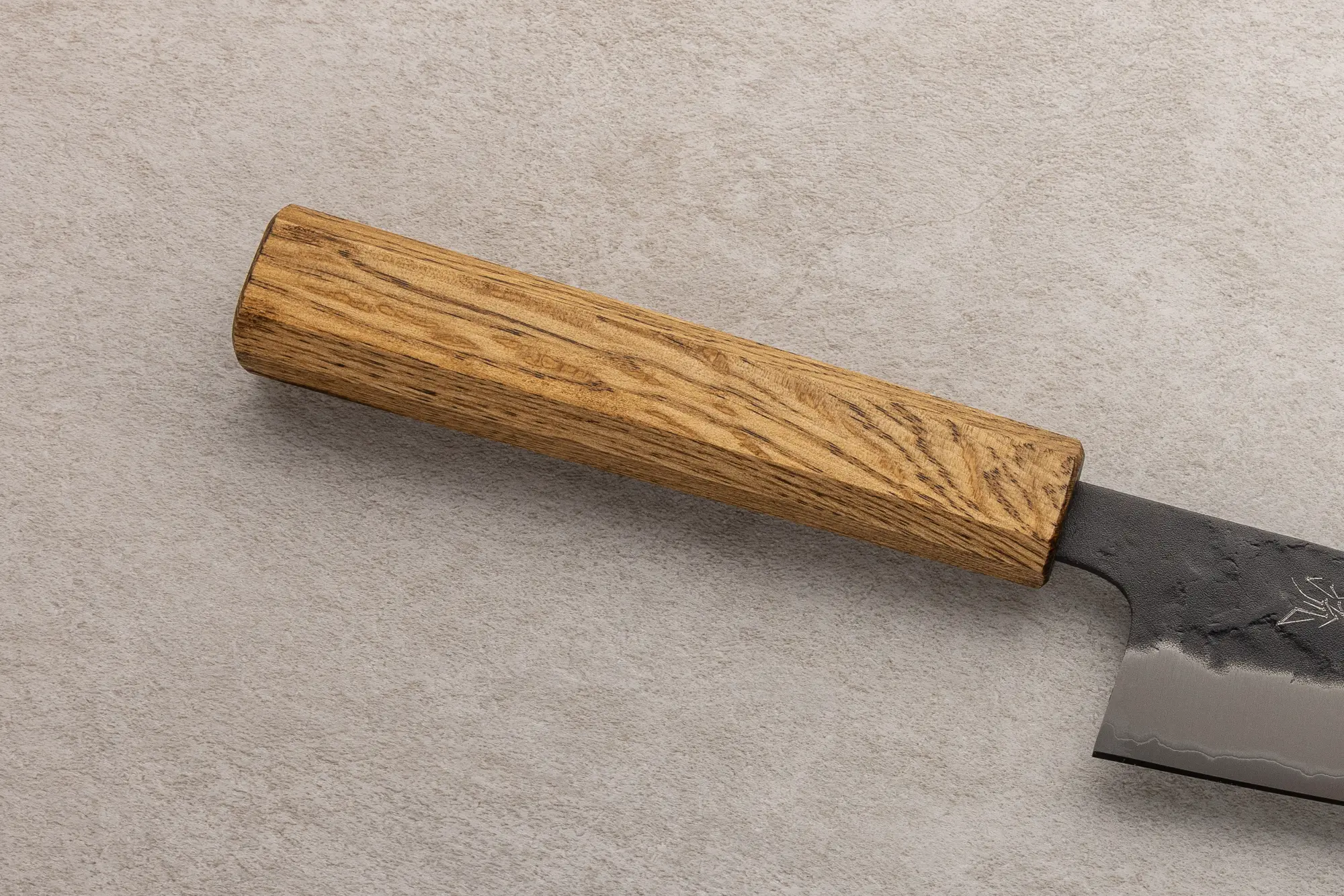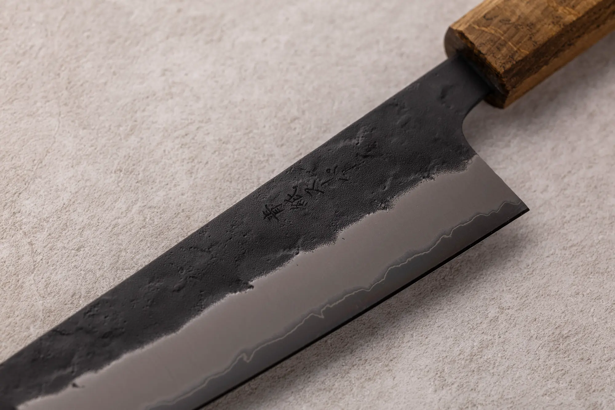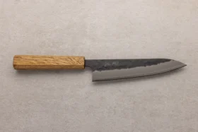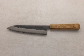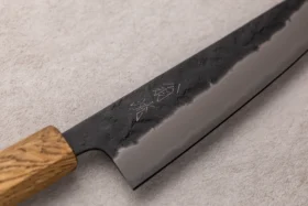 Aogami Super je najbolj dovršena različica Aogami jekla, ki združuje najboljše lastnosti Aogami #1 in Aogami #2. Z visoko vsebnostjo ogljika in dodatki volframa ter vanadija dosega trdoto do 64 HRC, kar mu daje izjemno obstojnost ostrine in vrhunsko odpornost proti obrabi. Čeprav je nekoliko bolj odporen na korozijo kot klasična ogljikova jekla, še vedno zahteva skrbno vzdrževanje, saj se na rezilu lahko razvije patina. Zaradi svoje dolgotrajne ostrine in odličnih rezalnih lastnosti je Aogami Super priljubljena izbira med profesionalnimi kuharji, ki pričakujejo maksimalno zmogljivost in natančnost pri delu.