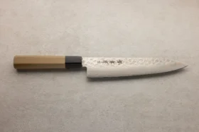 Sakai Takayuki je ena izmed najbolj cenjenih kovačij iz mesta Sakai v prefekturi Osaka, kjer se že več kot 600 let ohranja tradicija izdelave vrhunskih japonskih kuhinjskih nožev. Združujejo stoletja izkušenj z natančnim ročnim obrtništvom in sodobnimi tehnologijami, kar omogoča izdelavo nožev z izjemno ostrino, trpežnostjo in elegantnim dizajnom. Njihovi noži so izdelani iz kakovostnih jekel, pogosto z damaskovim vzorcem, ter so priljubljeni med profesionalnimi kuharji in kulinaričnimi navdušenci po vsem svetu. Sakai Takayuki ponuja širok spekter modelov, ki ustrezajo različnim stilom kuhanja in zahtevam uporabnikov.