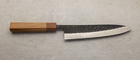 Sakai Takayuki je ena izmed najbolj cenjenih kovačij iz mesta Sakai v prefekturi Osaka, kjer se že več kot 600 let ohranja tradicija izdelave vrhunskih japonskih kuhinjskih nožev. Združujejo stoletja izkušenj z natančnim ročnim obrtništvom in sodobnimi tehnologijami, kar omogoča izdelavo nožev z izjemno ostrino, trpežnostjo in elegantnim dizajnom. Njihovi noži so izdelani iz kakovostnih jekel, pogosto z damaskovim vzorcem, ter so priljubljeni med profesionalnimi kuharji in kulinaričnimi navdušenci po vsem svetu. Sakai Takayuki ponuja širok spekter modelov, ki ustrezajo različnim stilom kuhanja in zahtevam uporabnikov.