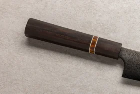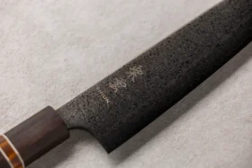 Seki Kanetsugu je priznana japonska kovačija iz mesta Seki v prefekturi Gifu, katere korenine segajo v leto 1918, ko jo je ustanovil Matsujiro Kawamura, potomec mečarskega mojstra Kanetsuguja iz 14. stoletja. Ta zgodovinska povezava s samurajsko tradicijo se odraža v vsakem njihovem nožu – ne le po obliki in estetiki, temveč tudi po izjemni ostrini, natančnosti in tehnični dovršenosti. Filozofija Seki Kanetsugu temelji na preoblikovanju duha japonskega meča v sodoben kuhinjski nož, pri čemer ohranjajo tisto brezkompromisno mojstrstvo, ki je nekoč krasilo orožje samurajev. Noži Seki Kanetsugu so znani po svoji posebni konveksni obliki rezila, ki omogoča gladek, natančen rez z manj trenja – lastnost, ki izvira prav iz mečarske oblike robov. Proizvajajo tako nože višjega cenovnega razreda, kot tudi cenovno dostopnejše serije, med katerimi je zelo priljubljena Miyabi Isshin. Ta serija združuje uravnoteženo konstrukcijo, klasično zasnovo in trpežno jeklo, kar jo naredi odlično izbiro za domače kuharje, ki želijo zanesljiv japonski nož po dostopnejši ceni. Med najbolj prepoznavnimi linijami izstopa serija Zuiun, kar v prevodu pomeni “pravi oblak”. Ta poetični naziv odraža njihovo filozofijo: noži Zuiun so izdelani z jedrom iz SG2 jekla, oviti v 62-plastni damask, s čudovito zrcalno ali mat končno obdelavo. Ročaji so ergonomsko oblikovani iz visokokakovostnega pakka lesa, v elegantni sedemstrani obliki, ki ponuja udoben in stabilen oprijem. Seki Kanetsugu uspešno združuje stoletno tradicijo s sodobno tehnologijo, kar se odraža v vsakem izdelku. Njihovi noži niso le kuhinjsko orodje, temveč izraz mojstrstva, natančnosti in spoštovanja do obrti, ki je preživela stoletja. Namenjeni so vsem, ki cenijo funkcionalnost, lepoto in zgodbo, ki jo prinaša resnično kakovosten japonski nož.