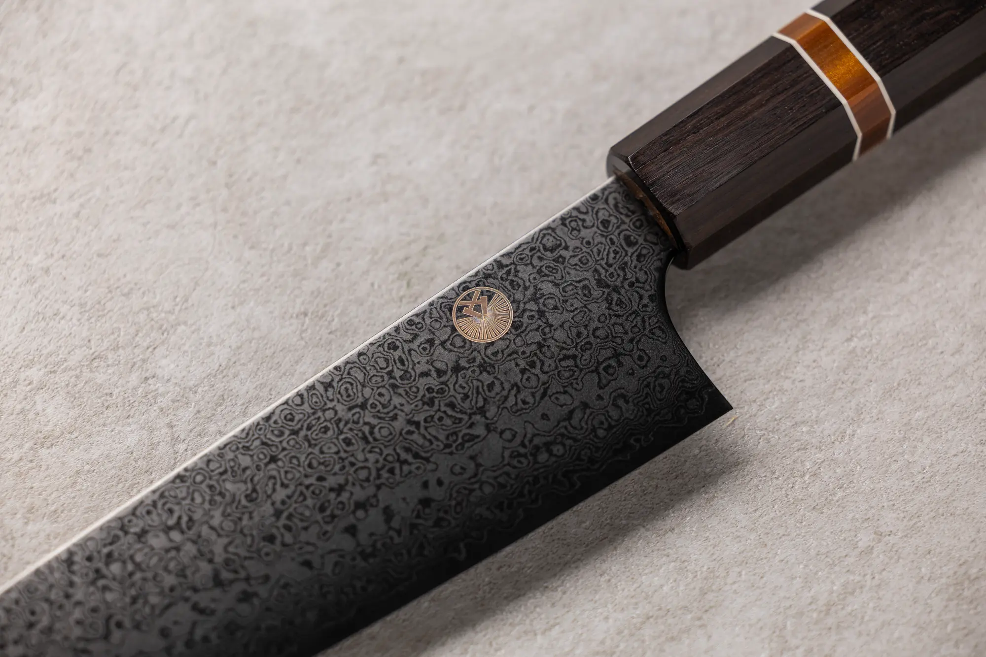 Seki Kanetsugu je priznana japonska kovačija iz mesta Seki v prefekturi Gifu, katere korenine segajo v leto 1918, ko jo je ustanovil Matsujiro Kawamura, potomec mečarskega mojstra Kanetsuguja iz 14. stoletja. Ta zgodovinska povezava s samurajsko tradicijo se odraža v vsakem njihovem nožu – ne le po obliki in estetiki, temveč tudi po izjemni ostrini, natančnosti in tehnični dovršenosti. Filozofija Seki Kanetsugu temelji na preoblikovanju duha japonskega meča v sodoben kuhinjski nož, pri čemer ohranjajo tisto brezkompromisno mojstrstvo, ki je nekoč krasilo orožje samurajev. Noži Seki Kanetsugu so znani po svoji posebni konveksni obliki rezila, ki omogoča gladek, natančen rez z manj trenja – lastnost, ki izvira prav iz mečarske oblike robov. Proizvajajo tako nože višjega cenovnega razreda, kot tudi cenovno dostopnejše serije, med katerimi je zelo priljubljena Miyabi Isshin. Ta serija združuje uravnoteženo konstrukcijo, klasično zasnovo in trpežno jeklo, kar jo naredi odlično izbiro za domače kuharje, ki želijo zanesljiv japonski nož po dostopnejši ceni. Med najbolj prepoznavnimi linijami izstopa serija Zuiun, kar v prevodu pomeni “pravi oblak”. Ta poetični naziv odraža njihovo filozofijo: noži Zuiun so izdelani z jedrom iz SG2 jekla, oviti v 62-plastni damask, s čudovito zrcalno ali mat končno obdelavo. Ročaji so ergonomsko oblikovani iz visokokakovostnega pakka lesa, v elegantni sedemstrani obliki, ki ponuja udoben in stabilen oprijem. Seki Kanetsugu uspešno združuje stoletno tradicijo s sodobno tehnologijo, kar se odraža v vsakem izdelku. Njihovi noži niso le kuhinjsko orodje, temveč izraz mojstrstva, natančnosti in spoštovanja do obrti, ki je preživela stoletja. Namenjeni so vsem, ki cenijo funkcionalnost, lepoto in zgodbo, ki jo prinaša resnično kakovosten japonski nož.