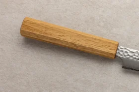 Seki Kanetsugu je priznana japonska kovačija iz mesta Seki v prefekturi Gifu, katere korenine segajo v leto 1918, ko jo je ustanovil Matsujiro Kawamura, potomec mečarskega mojstra Kanetsuguja iz 14. stoletja. Ta zgodovinska povezava s samurajsko tradicijo se odraža v vsakem njihovem nožu – ne le po obliki in estetiki, temveč tudi po izjemni ostrini, natančnosti in tehnični dovršenosti. Filozofija Seki Kanetsugu temelji na preoblikovanju duha japonskega meča v sodoben kuhinjski nož, pri čemer ohranjajo tisto brezkompromisno mojstrstvo, ki je nekoč krasilo orožje samurajev. Noži Seki Kanetsugu so znani po svoji posebni konveksni obliki rezila, ki omogoča gladek, natančen rez z manj trenja – lastnost, ki izvira prav iz mečarske oblike robov. Proizvajajo tako nože višjega cenovnega razreda, kot tudi cenovno dostopnejše serije, med katerimi je zelo priljubljena Miyabi Isshin. Ta serija združuje uravnoteženo konstrukcijo, klasično zasnovo in trpežno jeklo, kar jo naredi odlično izbiro za domače kuharje, ki želijo zanesljiv japonski nož po dostopnejši ceni. Med najbolj prepoznavnimi linijami izstopa serija Zuiun, kar v prevodu pomeni “pravi oblak”. Ta poetični naziv odraža njihovo filozofijo: noži Zuiun so izdelani z jedrom iz SG2 jekla, oviti v 62-plastni damask, s čudovito zrcalno ali mat končno obdelavo. Ročaji so ergonomsko oblikovani iz visokokakovostnega pakka lesa, v elegantni sedemstrani obliki, ki ponuja udoben in stabilen oprijem. Seki Kanetsugu uspešno združuje stoletno tradicijo s sodobno tehnologijo, kar se odraža v vsakem izdelku. Njihovi noži niso le kuhinjsko orodje, temveč izraz mojstrstva, natančnosti in spoštovanja do obrti, ki je preživela stoletja. Namenjeni so vsem, ki cenijo funkcionalnost, lepoto in zgodbo, ki jo prinaša resnično kakovosten japonski nož.