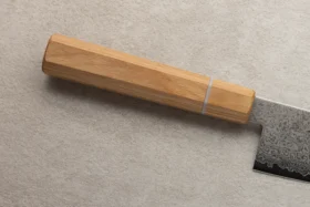 VG10 je eno najbolj znanih japonskih nerjavečih premium jekel in velja za standard v višjem razredu kuhinjskih nožev. S trdoto 60–61 HRC omogoča izjemno ostrino, ki se ohranja dlje časa kot pri AUS jeklih. Dodatek vanadija in kobalta povečuje žilavost ter zagotavlja vrhunsko ostrino, ki je primerna za natančno rezanje. Čeprav je brušenje zahtevnejše in zahteva kakovostne brusne kamne, je kot nerjaveče jeklo dobro odporen proti rji in relativno enostaven za vzdrževanje, zato je odlična izbira za vse, ki želijo vrhunsko ostrino in minimalno vzdrževanje.
