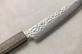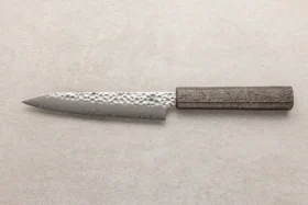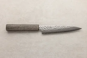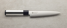 Seki Kanetsugu je priznana japonska kovačija iz mesta Seki v prefekturi Gifu, katere korenine segajo v leto 1918, ko jo je ustanovil Matsujiro Kawamura, potomec mečarskega mojstra Kanetsuguja iz 14. stoletja. Ta zgodovinska povezava s samurajsko tradicijo se odraža v vsakem njihovem nožu – ne le po obliki in estetiki, temveč tudi po izjemni ostrini, natančnosti in tehnični dovršenosti. Filozofija Seki Kanetsugu temelji na preoblikovanju duha japonskega meča v sodoben kuhinjski nož, pri čemer ohranjajo tisto brezkompromisno mojstrstvo, ki je nekoč krasilo orožje samurajev. Noži Seki Kanetsugu so znani po svoji posebni konveksni obliki rezila, ki omogoča gladek, natančen rez z manj trenja – lastnost, ki izvira prav iz mečarske oblike robov. Proizvajajo tako nože višjega cenovnega razreda, kot tudi cenovno dostopnejše serije, med katerimi je zelo priljubljena Miyabi Isshin. Ta serija združuje uravnoteženo konstrukcijo, klasično zasnovo in trpežno jeklo, kar jo naredi odlično izbiro za domače kuharje, ki želijo zanesljiv japonski nož po dostopnejši ceni. Med najbolj prepoznavnimi linijami izstopa serija Zuiun, kar v prevodu pomeni “pravi oblak”. Ta poetični naziv odraža njihovo filozofijo: noži Zuiun so izdelani z jedrom iz SG2 jekla, oviti v 62-plastni damask, s čudovito zrcalno ali mat končno obdelavo. Ročaji so ergonomsko oblikovani iz visokokakovostnega pakka lesa, v elegantni sedemstrani obliki, ki ponuja udoben in stabilen oprijem. Seki Kanetsugu uspešno združuje stoletno tradicijo s sodobno tehnologijo, kar se odraža v vsakem izdelku. Njihovi noži niso le kuhinjsko orodje, temveč izraz mojstrstva, natančnosti in spoštovanja do obrti, ki je preživela stoletja. Namenjeni so vsem, ki cenijo funkcionalnost, lepoto in zgodbo, ki jo prinaša resnično kakovosten japonski nož.