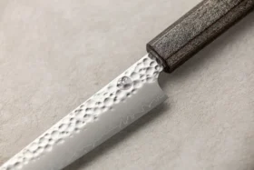 VG10 je eno najbolj znanih japonskih nerjavečih premium jekel in velja za standard v višjem razredu kuhinjskih nožev. S trdoto 60–61 HRC omogoča izjemno ostrino, ki se ohranja dlje časa kot pri AUS jeklih. Dodatek vanadija in kobalta povečuje žilavost ter zagotavlja vrhunsko ostrino, ki je primerna za natančno rezanje. Čeprav je brušenje zahtevnejše in zahteva kakovostne brusne kamne, je kot nerjaveče jeklo dobro odporen proti rji in relativno enostaven za vzdrževanje, zato je odlična izbira za vse, ki želijo vrhunsko ostrino in minimalno vzdrževanje.