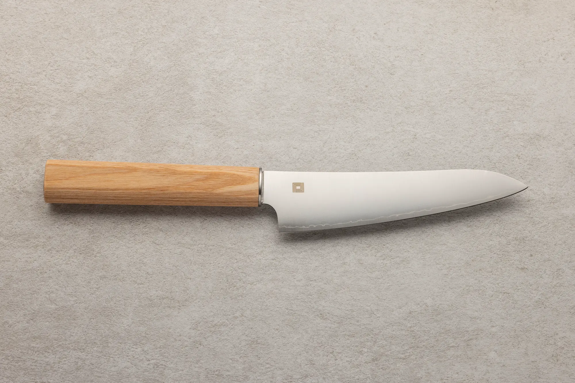 AUS-8 je eno najbolj razširjenih japonskih nerjavečih jekel za nože srednjega razreda. S trdoto 57–59 HRC ponuja dobro ravnovesje med ostrino, obstojnostjo in odpornostjo proti koroziji. Nož iz tega jekla je enostaven za brušenje tudi doma, zato je priljubljen med tistimi, ki nož pogosto uporabljajo in ga želijo brez težav sami vzdrževati. Kot nerjaveče jeklo je zelo enostavno za vzdrževanje, saj se dobro upira rji in ob rednem brušenju ohranja zanesljivo ostrino.