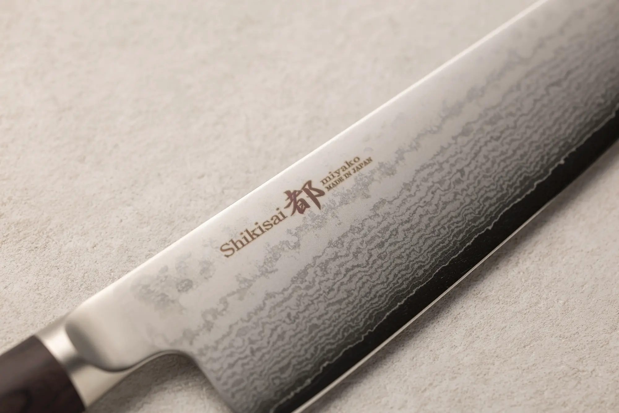 Shizu Hamono je japonska kovačija z dolgoletno tradicijo, ki izvira iz mesta Seki. Podjetje je bilo ustanovljeno leta 1980 in temelji na bogati dediščini kovaštva, ki v tej regiji sega vse do 12. stoletja. S ponosom poudarjajo, da njihovi vrhunski obrtniki združujejo bogato zgodovino in sodobne kulinarične trende, oblikujejo in ostrijo kuhinjske nože, ki so hkrati estetsko dovršeni in uporabni za današnje potrebe. Vsak nož je podvržen strogim in najnovejšim standardom kakovosti – izdelujejo ga skupaj z natančnimi internimi navodili za pregled, da zagotavljajo popolnost pri vsakem izdelku. Ker zaupajo v ta sistem, trdijo, da so njihovi izdelki vrhunski . Shizu Hamono je znan po tem, da še vedno ročno brusi in polira rezalne robove svojih nožev. Ta postopek omogoča ostrost in trpežnost, ki je pogosto presega tovarniško avtomatizirane alternative. Njihovi noži združujejo japonsko estetiko in evropsko uporabnost. Uporabljajo visoko kakovostna jekla, med drugim VG10 pri seriji GEN in AUS8 pri seriji Yuri. Poseben poudarek dajejo tudi vizualnemu učinku, kot je kuro-uchi zaključek – temna oksidacija, ki rezilu doda karakter in pristno japonsko noto. Med najbolj prepoznavnimi linijami podjetja so serije GEN, Yuri in Miyako. Serija GEN je znana po VG10 jeklu, črnem zaključku in elegantnem videzu, ki združuje tradicionalno in moderno. Yuri ponuja nekoliko lažje nože z AUS8 jeklom, tankim profilom in klasičnim japonskim ročajem, kar je odlična izbira za tiste, ki iščejo kakovost po dostopni ceni. Miyako pa izstopa z 33-slojnim damaščanskim vzorcem, AUS8 jedrom in hibridnim ročajem iz pakkawooda. Serija združuje japonsko estetiko z vsakodnevno uporabnostjo – noži so trpežni, enostavni za vzdrževanje in priljubljeni tako med domačimi kuharji kot profesionalci.